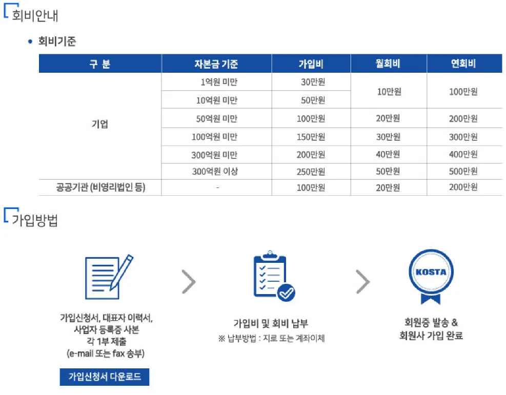 협약가입이 불가능한 대규모 기업의 경우 회원사 가입이 필요합니다. 회원사 가입의 경우 별도 회비가 발생(연1회)하며 비용은 아래표를 참고부탁드립니다.